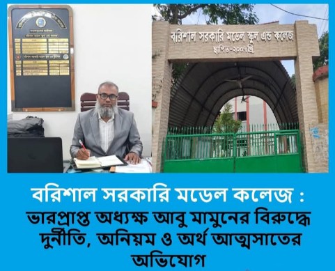 বরিশাল সরকারি মডেল স্কুল এন্ড কলেজের ভারপ্রাপ্ত অধ্যক্ষ আবু মামুনের বিরুদ্ধে আর্থিক অস্বচ্ছতা,দুর্নীতি,অনিয়ম,সরকারি টাকা আত্মসাৎ,কর্তব্যে অবহেলা,সরকারি অর্থ আত্মসাতে সহযোগীতা প্রদান,স্বেচ্ছাচারিতা,গোপনে নিয়োগ,শিক্ষার্থীদের টিফিনের টাকা নয়ছয়সহ নানা অভিযোগ। সকল অভিযোগ অস্বিকার করে