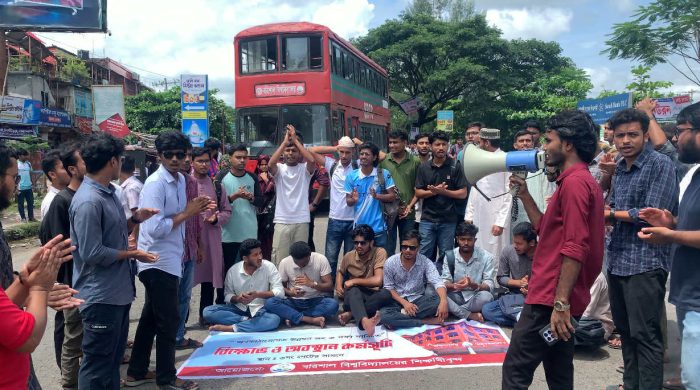 আবির হোসেন ওমর(বিশেষ প্রতিনিধি) অবকাঠামোগত উন্নয়ন, বিশ্ববিদ্যালয়ের আয়তন বৃদ্ধি ও নিরাপদ পরিবহন ব্যবস্থার দাবিতে চলমান আন্দোলনের অংশ হিসেবে ২৪ ঘণ্টার আল্টিমেটাম দিয়েছে বরিশাল বিশ্ববিদ্যালয়ের (ববি) শিক্ষার্থীরা। রোববার (২৪ আগস্ট) মহাসড়ক