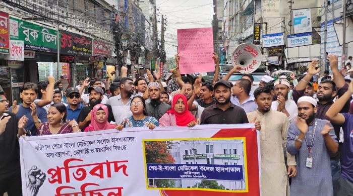 বরিশালে শের-ই-বাংলা মেডিকেল কলেজ হাসপাতালের (শেবাচিম) অব্যবস্থাপনা, ভোগান্তি ও হয়রানির বিরুদ্ধে প্রতিবাদ মিছিল করেছেন ভুক্তভোগী সাধারণ মানুষ ও শিক্ষার্থীরা। সোমবার (২৮ জুলাই) বিকেল ৪টায় শেবাচিম হাসপাতালের প্রধান ফটকে এই কর্মসূচি